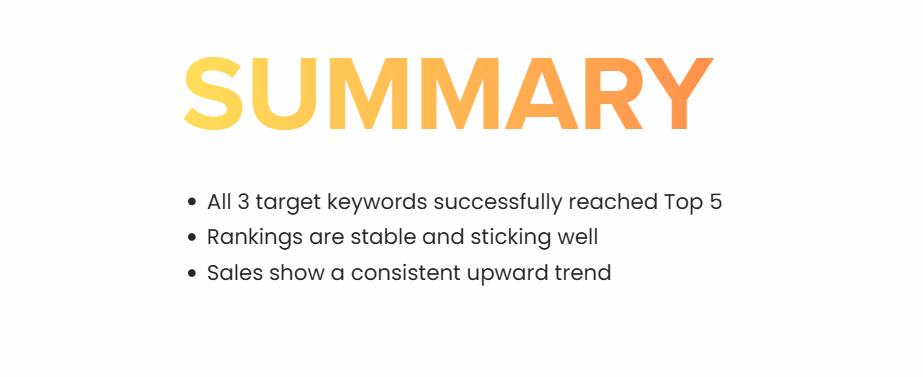 All three target keywords reached Top 5 on Page 1 ā and stayed there.