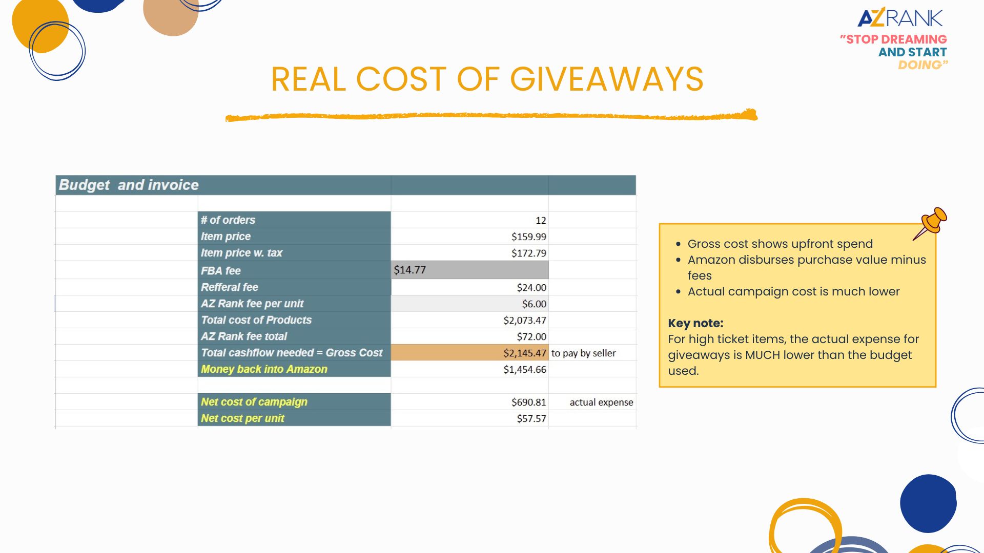 Once Amazon reimbursements and fees are accounted for the actual campaign cost is significantly lower than the upfront spend.